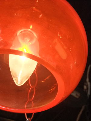 | 商品説明… 国産ビンテージのペンダントです オレンジのガラスシェードが とても可愛い照明です。 電球は一回り小さなE17、 古いのでシェード縁には小さな傷がありますが 気になるほどの大きさではありません。 設置は ペンダントタイプになります。 詳しくはコチラを参照ください。 |
