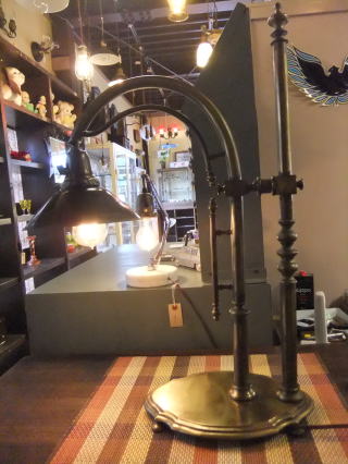 | ●アメリカンアンティークなデスクランプです。真鍮製。 すぐに使えるようメンテナンス済みのアンティークな照明です。 シェードは米軍仕様の琺瑯です。 ※電球は付属しませんのでお客様の方でご用意ください。 ●42000円(税別) ●製造年代(推定)1950’s ●送料 140サイズ…コチラを参照ください ●在庫1個 ●サイズ シェード直径20cm×横幅40 p×高さ67p ●白熱電球は最大で60wまでの物を使用してください。LED電球も使用可能です ●電球は付属しません ●口金サイズ E26 ●PSE表示 あり。 当店の表示基準については コチラです |