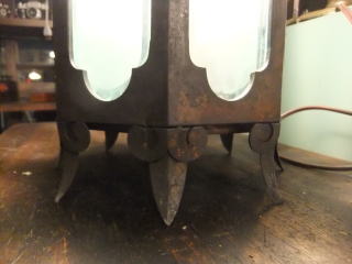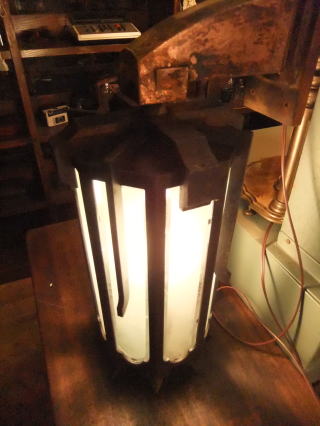 | ●古い銅製の国産玄関灯です。ガラスのカットが特徴です。 1灯の価格です。在庫は2灯あります。 すぐに使えるようメンテナンス済みのアンティークな照明です。 ※電球は付属しませんのでお客様の方でご用意ください。 ●48000円(税別) ●製造年代(推定) 1940’s ●送料 140サイズ…コチラを参照ください ●在庫1個 ●サイズ シェード直径 20cm×縦60p×壁からの距離30p ●白熱電球は最大で40w〜60wまでの物を使用してください。LED電球も使用可能です ●電球は付属しません ●口金サイズ E26 ●PSE表示 シール表示はありませんがPSE規格と同等の検査済です。 当店の表示基準については コチラです |