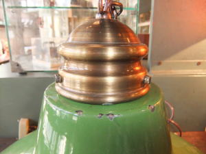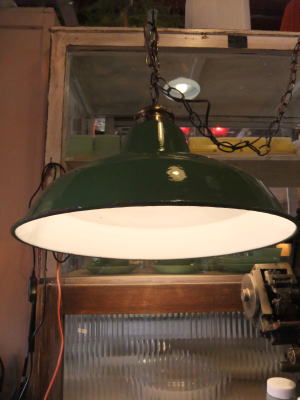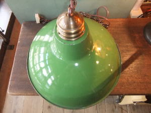 | やや大きめのインダストリアルペンダントです。 シェードは定番グリーンの琺瑯製です。 チェーン式にしています。 コード新品 ソケット新品 天井への設置はペンダントタイプになります。 詳しくはコチラを参照ください。 |