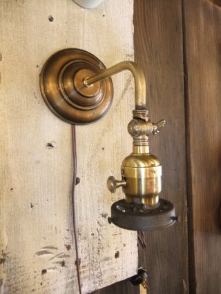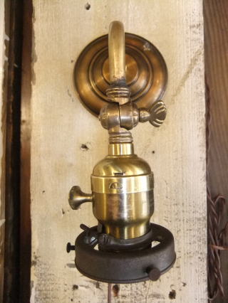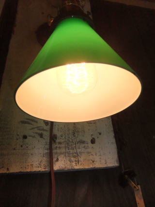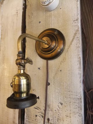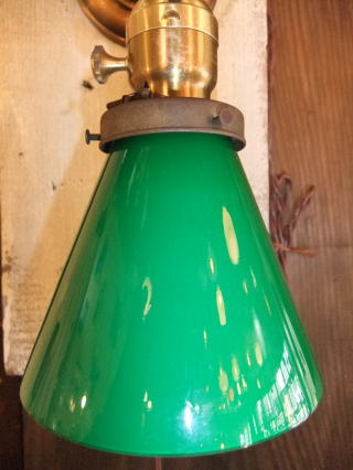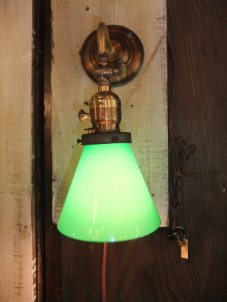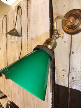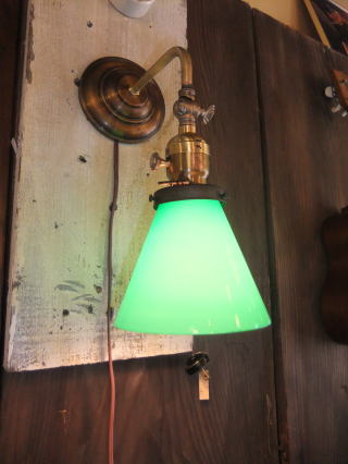 | アメリカンウオールライトカスタムです。 小さなグリーンのシェードがとても可愛いですよ。 シェードの角度は変えられます。 すぐに使えるようメンテナンス済みのアンティークな照明です。 壁への設置はブラケットタイプになります。 詳しくはコチラを参照ください。 |