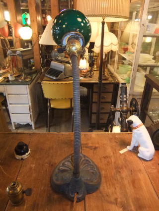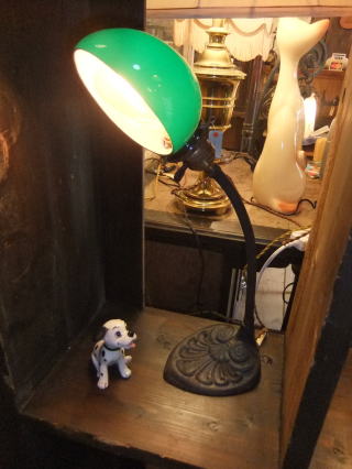 | とても古い国産グースネックランプです。 近年の物ですがグリーンガラスのシェードが綺麗です。 ソケットにはアメリカ製1910年代ファットボーイ使用。 すぐに使えるようメンテナンス済みのアンティークな照明です。 ※電球は付属しませんのでお客様の方でご用意ください。 ●製造年代(推定) 1940’s ●送料 100サイズ…コチラを参照ください ●在庫1個 ●サイズ シェード縦12p×横10p スタンド最大高さ55p ●白熱電球は最大で60wまでの物を使用してください。LED電球も使用可能です ●電球は付属しません ●口金サイズ E26 ●PSE表示 シール表示はありませんがPSE規格と同等の検査済です。 当店の表示基準については コチラです |