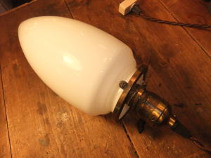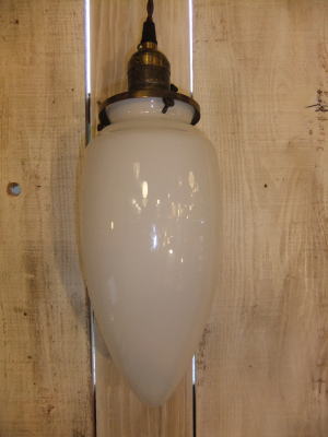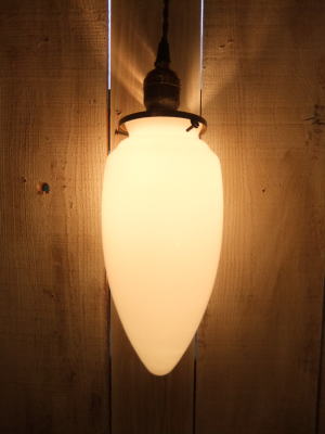 | アメリカンビンテージなミルクガラスペンダントです。 アールデコデザインがエレガントです。 コードにはブラウンシルクツイストコードを使用しています。 ソケットは1910年代の物です。 コード新品 ソケット他メンテナンス済みなのですぐに使用できます。 天井への設置はペンダントタイプになります。 詳しくはコチラを参照ください。 |