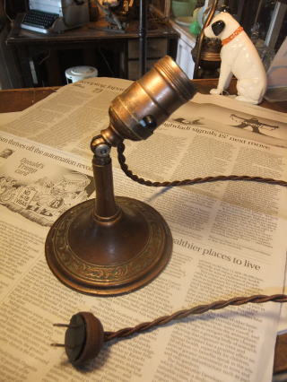 | ●アンティークランプです。 デスクライトでも挟んでクリップライトでも使用できます。 すぐに使えるようメンテナンス済みのアンティークな照明です ●商品番号 #547 ●価格13000円(税抜) ●製造年代(推定) 1940’s ●送料 80サイズ…コチラを参照ください。 ●在庫1個 ●サイズ ランプベース直径12cm×高さ20p(直立時、電球含まず) ●白熱電球は最大で60wまでの物を使用してください。LED電球も使用可能です ●電球は付属しません ●口金サイズ E26 ●PSE表示 シール表示はありませんがPSE規格と同等の検査済です。 当店の表示基準については コチラです ●お問い合わせ先 「トレモロ」 /fax 092−924−2888 |