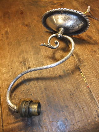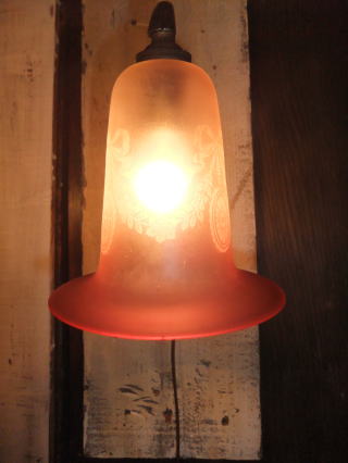 | ◎イギリスアンティークのブラケットライトです。 シルバー風のブラケットに サンドブラスト腐食仕上げのピンクなフリルシェードは透かし模様です。 現状すぐに点灯確認できるようにコンセントプラグを付けております。 細めのワイヤーなのでイギリス球の25Wまでの使用をお勧めします。 すぐに使えるようメンテナンス済みのアンティークな照明です。 ※電球は付属しませんのでお客様の方でご用意ください。 ●価格49800円(税別) ●製造年代(推定) 1920’s ●送料 100サイズ…コチラを参照ください ●在庫1個 ●サイズ シェード直径14cm×シェード縦14p。全体の縦20p 壁からの距離25p ●白熱電球は最大で40wまでの物を使用してください。LED電球も使用可能です ●電球は付属しません ●口金サイズ B22イギリス球 ●壁への設置はブラケットタイプになります。 詳しくはコチラを参照ください。 ●PSE表示 シール表示はありませんがPSE規格と同等の検査済です。 当店の表示基準については コチラです |