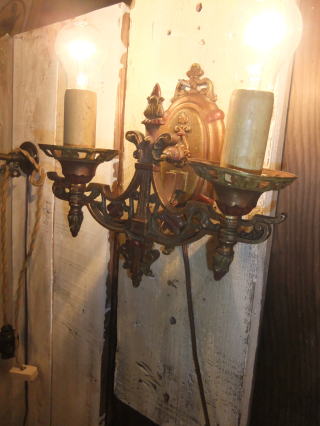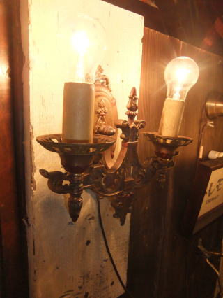 | ●アンティークなブラス製ブラケット照明です。 点灯確認できるようにコンセントプラグを付けております。 すぐに使えるようメンテナンス済みのアンティークな照明です。 ※電球は付属しませんのでお客様の方でご用意ください。 ●32000円(税別) ●製造年代(推定) 1920’s ●送料 100サイズ…コチラを参照ください ●在庫1個 ●サイズ 縦27p×横27p。壁からの距離10p ●白熱電球は最大で40wまでの物を使用してください。LED電球も使用可能です ●電球は付属しません ●口金サイズ E26 ●PSE表示 シール表示はありませんがPSE規格と同等の検査済です。 当店の表示基準については コチラです ■ 壁への取付方法はコチラを参考にして下さい。 |