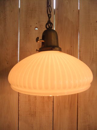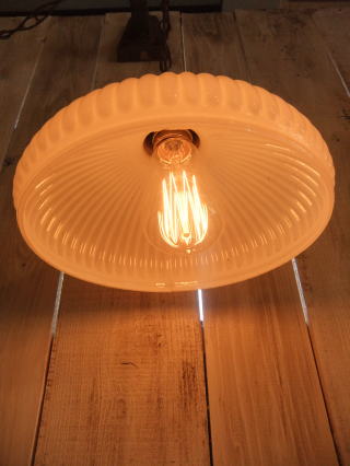| 昭和初期のミルクガラスのチェーンペンダントです。 ソケットやホルダー等はアメリカ製です。 コード新品 ソケット新品 他メンテナンス済みなのですぐに使用できます。 天井への設置はペンダントタイプになります。 詳しくはコチラを参照ください。 |