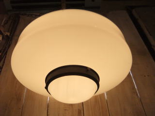とても古いガラスシェードなのでユラユラしたり気泡が入ったりしています。 最下部の丸いガラスは金具で止めているので外れます。 コード新品 ソケット他メンテナンス済みなのですぐに使用できます。 天井への設置は直付けタイプになります。 詳しくはコチラを参照ください。 |