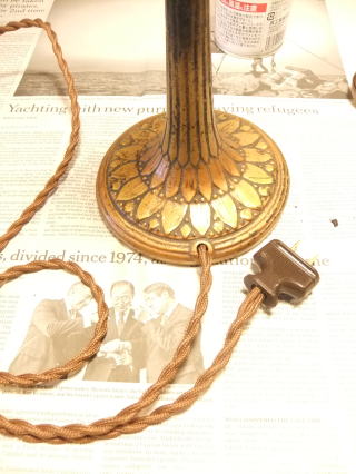 とても古いガラスなので全体に汚れや小さな傷があります。 台座は重量感たっぷりあります。 コードはブラウンツイストコードに変更しております コード新品 ソケット他メンテナンス済みなのですぐに使用できます。 |