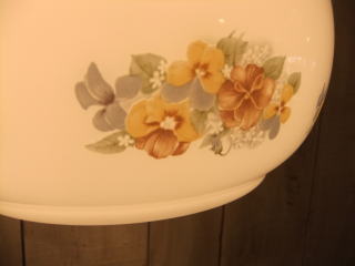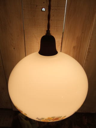 花の絵はプリントのようですが爪で擦っても剥げません コード新品 ソケット新品 他メンテナンス済みなのですぐに使用できます。 天井への設置はペンダントタイプになります。 詳しくはコチラを参照ください。 |