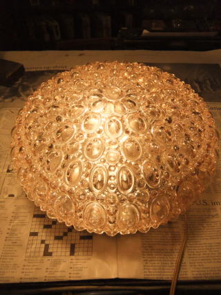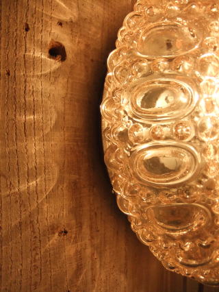ガラスシェードの凸凹がとても美しいので映る影も幻想的でつい見とれてしまいます。 コード新品 ソケット他メンテナンス済みなのですぐに使用できます。 壁への設置は釘等に引掛けるタイプになります(直付も可)。 詳しくはコチラを参照ください。 |