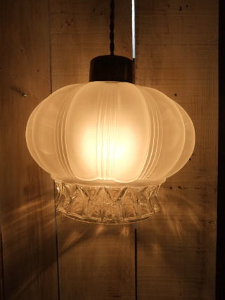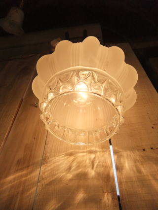 ガラスシェードはユラユラ感がありとても薄い作りになっています コード新品 ソケット新品 他メンテナンス済みなのですぐに使用できます。 天井への設置は引掛けシーリングタイプになります 詳しくはコチラを参照ください。 |