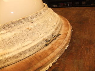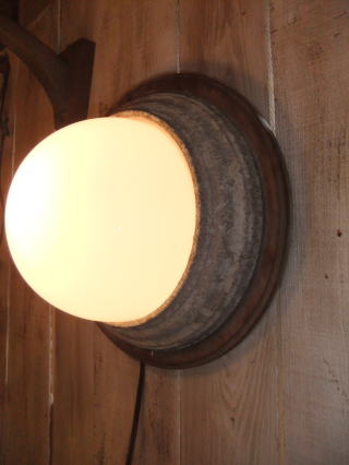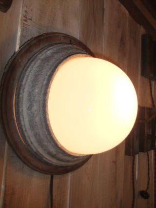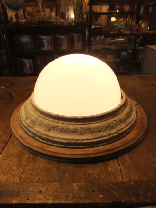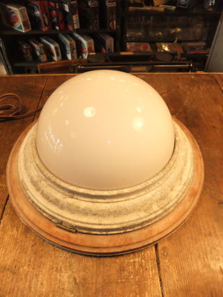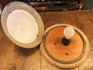 昔の客車の天井灯かもしれませんね。 下に何か敷いてデスクの上に置いて使用しても良いですね 台座は木製です 現在、コンセントプラグを付けております。 コード新品 ソケット内部他メンテナンス済みなのですぐに使用できます。 壁、天井への設置はブラケット直付タイプになります。 詳しくはコチラを参照ください。 |