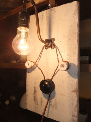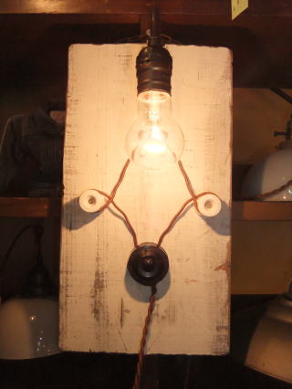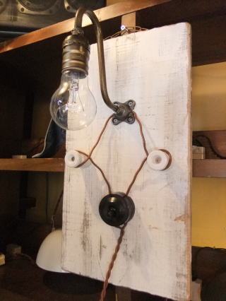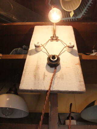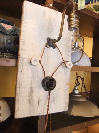 | 古材に新品ソケットとビンテージスイッチ、碍子を取り付け 壁に掛けられるように作った照明です コンセントタイプにしております コード新品 ソケット新品 他メンテナンス済みなのですぐに使用できます。 |