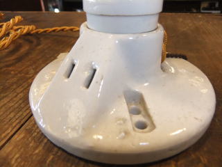 古い磁器製の壁用ライトですが 現在末端をコンセントタイプにしてますのでスタンドでも利用できます プルチェーンスイッチです コンセントプラグが使用できます コード新品 ソケット他メンテナンス済みなのですぐに使用できます。 壁への設置は直付けになります 詳しくは コチラを参照ください。 |