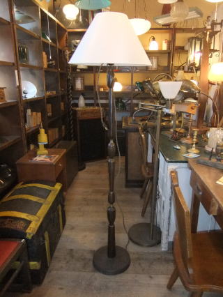 | モダンな日本製のビンテージウッドランプです シェードは現代の物です(若干の汚れあります) コード新品 ソケット内部他メンテナンス済みなのですぐに使用できます。 |