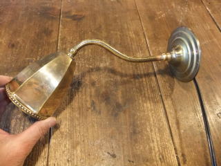 オール真鍮製の小ぶりなカスタムブラケットです 電球も小ぶりなものが可愛いです コード新品 ソケット新品 他メンテナンス済みなのですぐに使用できます。 壁への設置は直付けになります 詳しくは コチラを参照ください。 |