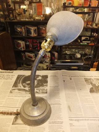 | 日本製のアルミシェードランプです 昭和の中頃までよく見かけたデスクライトです コード新品 ソケット新品 他メンテナンス済みなのですぐに使用できます。 |