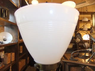 | アメリカ製真鍮のフロアスタンドです ミルクガラスの模様がとてもモダンです コード、、ソケット他メンテナンス済みなのですぐに使用できます。 |
