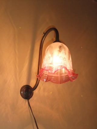 | イギリス製のアンティークブラケットライトです 推定雄1920年代と思われます とても上品な腐食擦りガラスのシェード(小さな傷あります)と 上質な真鍮製ブラケットの組み合わせです。 電球はイギリス球です コード新品 ソケット他メンテナンス済みなのですぐに使用できます。 壁への設置は直付タイプになります。 詳しくはコチラを参照ください。 |