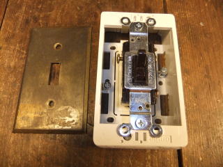 古い米国製の重厚なスイッチセットです スイッチ部はデッドストック品です 通電確認済みなのですぐに使用できます。 日本製埋め込みボックスにも対応します。(写真参照) |
