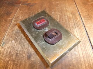 古い米国製の重厚なスイッチセットです スイッチ部はデッドストック品です。赤いランプが点きます 通電確認済みなのですぐに使用できます。 日本製埋め込みボックスにも対応します。(写真参照) |